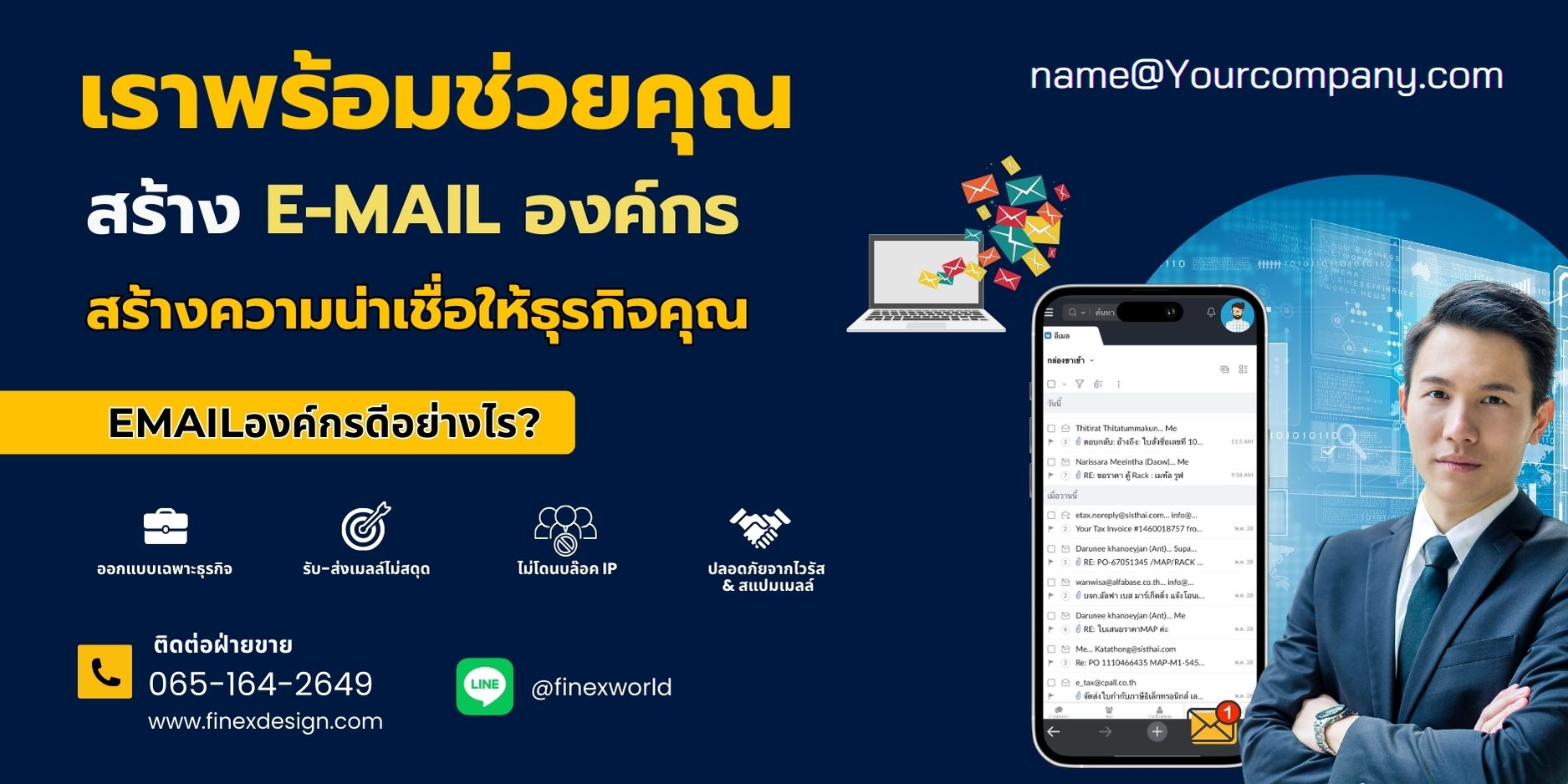 รับทำอีเมลบริษัท อีเมลองค์กร your email@yourcompany.com สร้าง E-mail ของธุรกิจคุณเอง ช่วยให้ธุรกิจของคุณดูน่าเชื่อถือในสายตาลูกค้า สร้างประสบการณ์ทำธุรกิจผ่านโลก Digital เป็นเรื่องง่าย